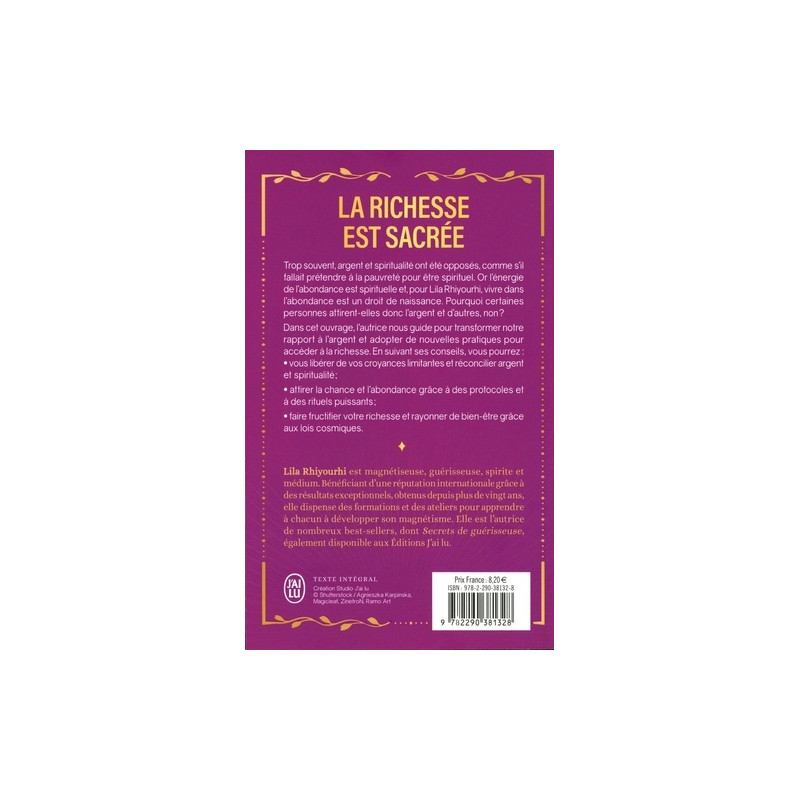 Trop souvent, argent et spiritualité ont été opposés, comme s'il fallait prétendre à la pauvreté pour être spirituel. Or l'énergie de l'abondance est spirituelle et, pour Lila Rhiyourhi, vivre dans l'abondance est un droit de naissance. Pourquoi certaines personnes attirent-elles donc l'argent et d'autres, non ? Dans cet ouvrage, l'autrice nous guide pour transformer notre rapport à l'argent et adopter de nouvelles pratiques pour accéder à la richesse. En suivant ses conseils, vous pourrez : - vous libérer de vos croyances limitantes et réconcilier argent et spiritualité ; - attirer la chance et l'abondance grâce à des protocoles et à des rituels puissants ; - faire fructifier votre richesse et rayonner de bien-être grâce aux lois cosmiques.