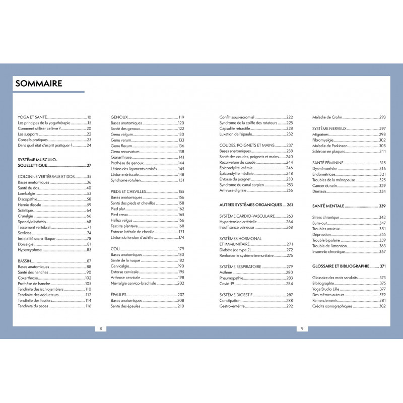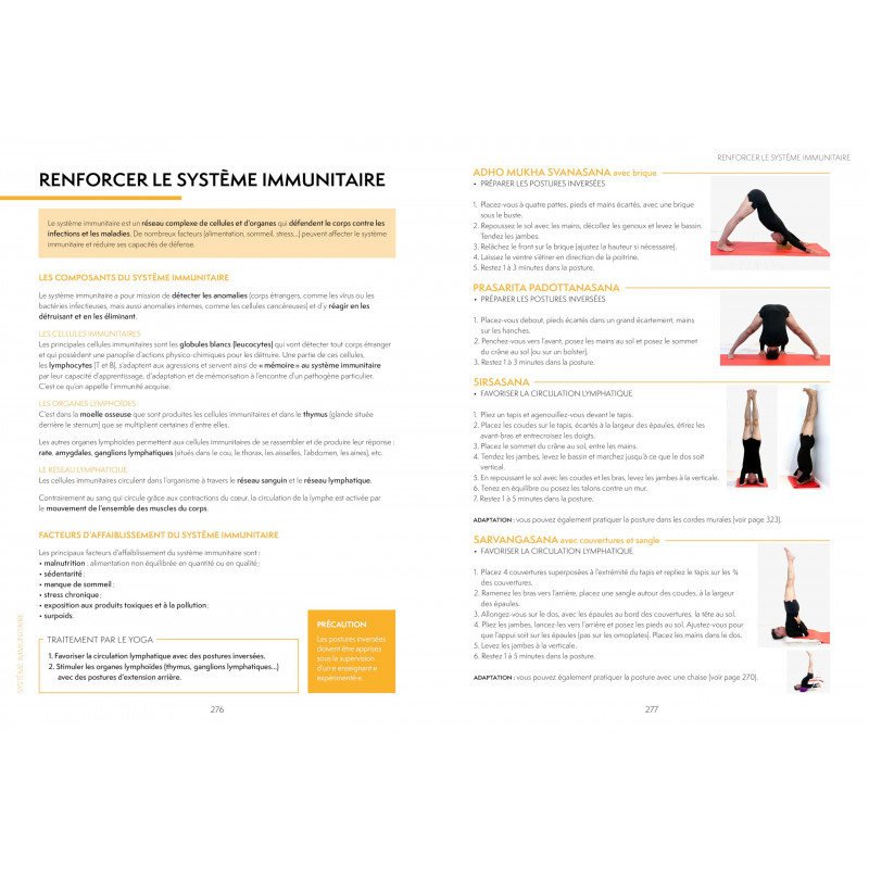 Complément indispensable aux deux premiers volumes de L'Encyclopédie du yoga de Marie et Philippe Amar, ce nouvel ouvrage est consacré à la yogathérapie, pour prévenir les problèmes de santé et soulager les pathologies existantes. 15 séquences préventives par grandes zones du corps (dos, bassin, genoux, épaules...). 70 pathologies traitées par le yoga - Pathologies musculo-squelettiques (lombalgie, sciatique, arthrose, tendinites, syndrome du canal carpien...) ; - Pathologies organiques (hypertension, diabète, asthme, migraine, endométriose...) ; - Santé mentale (stress chronique, dépression, burn-out...).