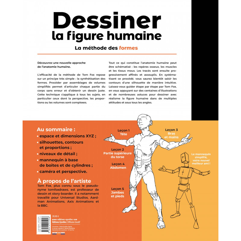 Découvrez une nouvelle approche de l'anatomie humaine. L'efficacité de la méthode de Tom Fox repose sur un principe très simple : la synthétisation des formes. Procéder par assemblages de volumes simplifiés permet d'articuler chaque partie du corps sans erreur et d'obtenir un dessin juste. Cette technique s'applique à tous les sujets, en particulier ceux dont la perspective, les proportions ou les volumes sont complexes.