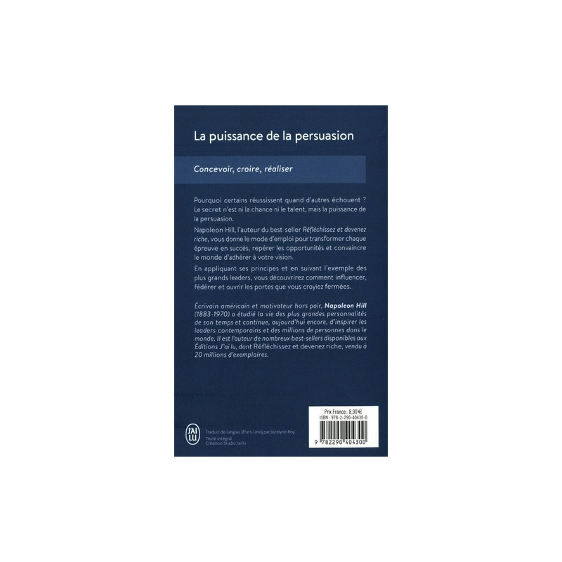 Pourquoi certains réussissent quand d'autres échouent ? Le secret n'est ni la chance ni le talent, mais la puissance de la persuasion. Napoleon Hill, l'auteur du best-seller Réfléchissez et devenez riche, vous donne le mode d'emploi pour transformer chaque épreuve en succès, repérer les opportunités et convaincre le monde d'adhérer à votre vision. En appliquant ses principes et en suivant l'exemple des plus grands leaders, vous découvrirez comment influencer, fédérer et ouvrir les portes que vous croyiez fermées.