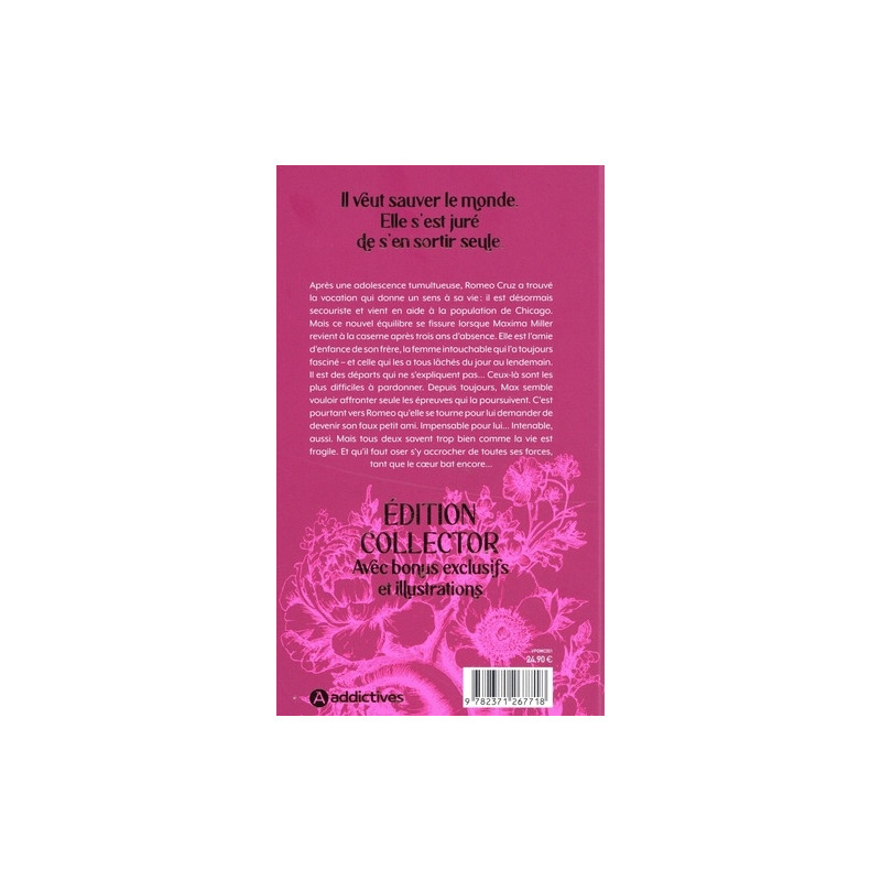 Il veut sauver le monde. Elle s'est juré de s'en sortir seule Après une adolescence tumultueuse, Romeo Cruz a trouvé la vocation qui donne un sens à sa vie : il est désormais secouriste et vient en aide à la population de Chicago. Mais ce nouvel équilibre se fissure lorsque Max Miller revient à la caserne après trois ans d'absence. Elle est l'amie d'enfance de son frère, la femme intouchable qui l'a toujours fasciné - et celle qui les a tous lâchés du jour au lendemain. Il est des départs qui ne s'expliquent pas... Ceux-là sont les plus difficiles à pardonner. Depuis toujours, Maxima semble vouloir affronter seule les épreuves qui la poursuivent. C'est pourtant vers Rome qu'elle se tourne pour lui demander de devenir son faux petit ami. Impensable pour lui... Intenable, aussi. Mais tous deux savent trop bien comme la vie est fragile. Et qu'il faut oser s'y accrocher de toutes ses forces, tant que le coeur bat encore...