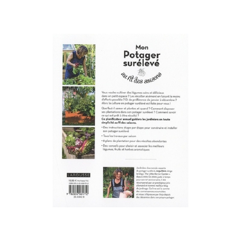 Pour les jardiniers, débutants ou non, se lancer dans la culture de légumes soulève de nombreuses questions : quels légumes faut-il semer ou planter, et quand ? Comment savoir ce qui est prêt à être récolté ? Comment disposer ses plantations son potager en carré ? Ce planificateur annuel guide les débutants en toute simplicité tout au long de l'année. - Des pas à pas pour installer son potager en carré - Des plans de plantation pour chaque saison - Tous les travaux par saison expliqués par des pas à pas et des checklists - Des fiches plantes pour choisir les meilleurs légumes, fruits et herbes aromatiques