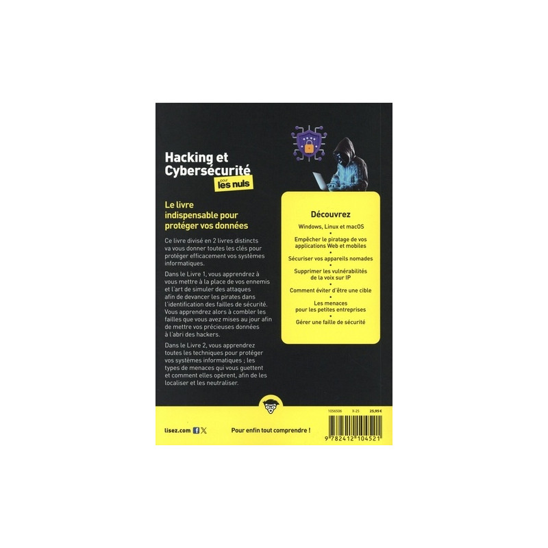 Le livre indispensable pour protéger vos données. Ce livre divisé en 2 livres distincts va vous donner toutes les clés pour protéger efficacement vos systèmes informatiques. Dans le Livre 1, vous apprendrez à vous mettre à la place de vos ennemis et l'art de simuler des attaques afin de devancer les pirates dans l'identification des failles de sécurité. Vous apprendrez alors à combler les failles que vous avez mises au jour afin de mettre vos précieuses données à l'abri des hackers. Dans le Livre 2, vous apprendrez toutes les techniques pour protéger vos systèmes informatiques ; les types de menaces qui vous guettent et comment elles opèrent, afin de les localiser et les neutraliser. Découvrez : Windows, Linux et macOS ; Empêcher le piratage de vos applications Web et mobiles ; Sécuriser vos appareils nomades ; Supprimer les vulnérabilités de la voix sur IP ; Comment éviter d'être une cible ; Les menaces pour les petites entreprises ; Gérer une faille de sécurité.