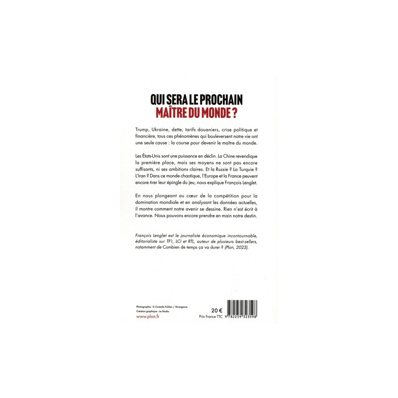 Crise énergétique, financière asiatique, guerre des tarifs douaniers, endettement des vieilles nations, conflit en Ukraine et au Moyen-Orient... Et si toutes ces manifestations avaient une même cause ? La course effrénée entre plusieurs leaders pour la domination mondiale. Nous traversons les crises et les chocs les uns après les autres. Autour de nous la violence des conflits se déchaine. A nos portes avec l'Ukraine. Non loin encore, au Proche et Moyen Orient. Les grands opérateurs du numériques se livrent à des attaques en règles contre les institutions et les médias classiques. Il y a la puissance déclinante. Celle qui a assuré la sécurité et la stabilité de l'économie et créé les conditions de la mondialisation dont nous sortons : les Etats-Unis. Et la puissance montante, la Chine, dont le règne est annoncé depuis plusieurs décennies et qui n'en peut plus d'attendre de prendre la suite. Déjà son impatience se fait parfois arrogance. Qui des deux va l'emporter ? Quel rôle joue la France dans cette compétition ? Et l'Europe peut-elle encore tirer son épingle du jeu ? Telles sont les questions que François Lenglet pose dans ce livre.