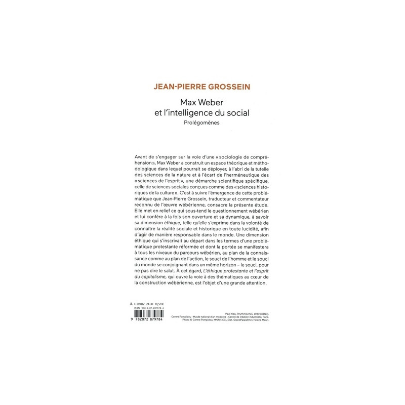 Avant de s'engager sur la voie d'une "sociologie de compréhension", Max Weber a construit un espace théorique et méthodologique dans lequel pourrait se déployer, à l'abri de la tutelle des sciences de la nature et à l'écart de l'herméneutique des "sciences de l'esprit", une démarche scientifique spécifique, celle de sciences sociales conçues comme des "sciences historiques de la culture". C'est à suivre l'émergence de cette problématique que Jean-Pierre Grossein, traducteur et commentateur reconnu de l'oeuvre wébérienne, consacre la présente étude. Elle met en relief ce qui sous-tend le questionnement wébérien et lui confère à la fois son ouverture et sa dynamique, à savoir sa dimension éthique, telle qu'elle s'exprime dans la volonté de connaître la réalité sociale et historique en toute lucidité, afin d'agir de manière responsable dans le monde. Une dimension éthique qui s'inscrivait au départ dans les termes d'une problématique protestante réformée et dont la portée se manifestera à tous les niveaux du parcours wébérien, au plan de la connaissance comme au plan de l'action, le souci de l'homme et le souci du monde se conjoignant dans un même horizon - le souci, pour ne pas dire le salut. A cet égard, L'éthique protestante et l'esprit du capitalisme, qui ouvre la voie à des thématiques au coeur de la construction wébérienne, est l'objet d'une grande attention.