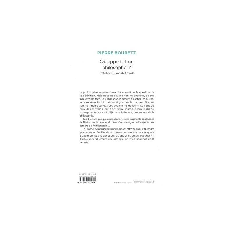 La philosophie se pose souvent à elle-même la question de sa définition. Mais nous ne savons rien, ou presque, de ses manières de faire au jour le jour. Les philosophes aiment en effet à cacher les pistes, tenir secrètes les hésitations et gommer les ratures. Et nous sommes moins curieux des documents de leur travail que de ceux des écrivains, considérant … La philosophie se pose souvent à elle-même la question de sa définition. Mais nous ne savons rien, ou presque, de ses manières de faire au jour le jour. Les philosophes aiment en effet à cacher les pistes, tenir secrètes les hésitations et gommer les ratures. Et nous sommes moins curieux des documents de leur travail que de ceux des écrivains, considérant que journaux, brouillons ou correspondances sont déjà de la littérature, pas encore de la philosophie. Il est bien sûr quelques exceptions, tels les fragments posthumes de Nietzsche, le dossier du Livre des passages de Walter Benjamin, les carnets de Wittgenstein. Mais c'est peu pour tenter de relier le visible et l'invisible, les idées et les intuitions. Récemment publié, le Journal de pensée d'Hannah Arendt offre de quoi surprendre quiconque est familier de son oeuvre comme le lecteur en quête d'une réponse à la question : qu'appelle-t-on philosopher ? Il illustre admirablement une pratique, un style, un ethos de la pensée. Arendt est demeurée rétive aux programmes de la philosophie, préférant s'adonner à ce qu'elle nommait "pensée libre". Ses exercices quotidiens doivent beaucoup à la fréquentation des livres classiques, qu'elle cite et commente "pour avoir des témoins, également des amis". Nous y voyons des idées qui surgissent d'un mot noté au hasard des lectures, se déploient en ligne droite ou bifurquent, s'agencent en tables de catégories, trouvent enfin la forme d'un article ou d'un livre. Mais nous y découvrons aussi des chemins qui ne mènent nulle part et les raisons de quelques échecs. Séjournant dans l'antichambre des livres, serons-nous tentés, pour finir, de donner raison à Kant et dire à sa suite que "le philosophe n'est qu'une idée" ?