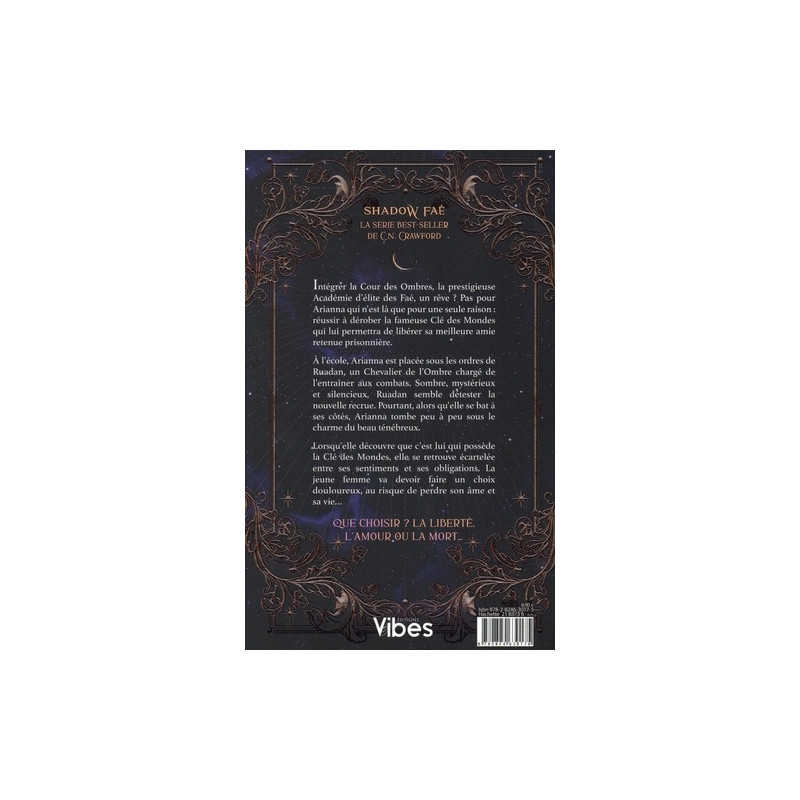 Intégrer la Cour des Ombres, la prestigieuse Académie d'élite des Faé, un rêve ? Pas pour Arianna qui n'est là que pour une seule raison : réussir à dérober la fameuse Clé des Mondes qui lui permettra de libérer sa meilleure amie retenue prisonnière. A l'école, Arianna est placée sous les ordres de Ruadan, un Chevalier de l'Ombre chargé de l'entraîner aux combats. Sombre, mystérieux et silencieux, Ruadan semble détester la nouvelle recrue. Pourtant, alors qu'elle se bat à ses côtés, Arianna tombe peu à peu sous le charme du beau ténébreux. Lorsqu'elle découvre que c'est lui qui possède la Clé des Mondes, elle se retrouve écartelée entre ses sentiments et ses obligations. La jeune femme va devoir faire un choix douloureux, au risque de perdre son âme et sa vie... Que choisir ? La liberté, l'amour ou la mort...