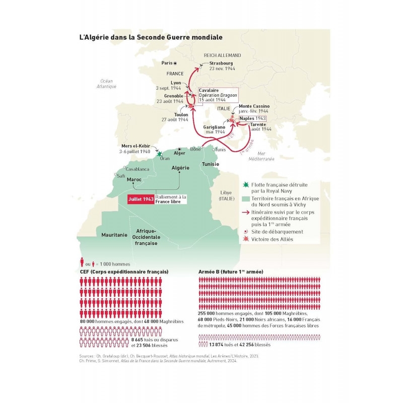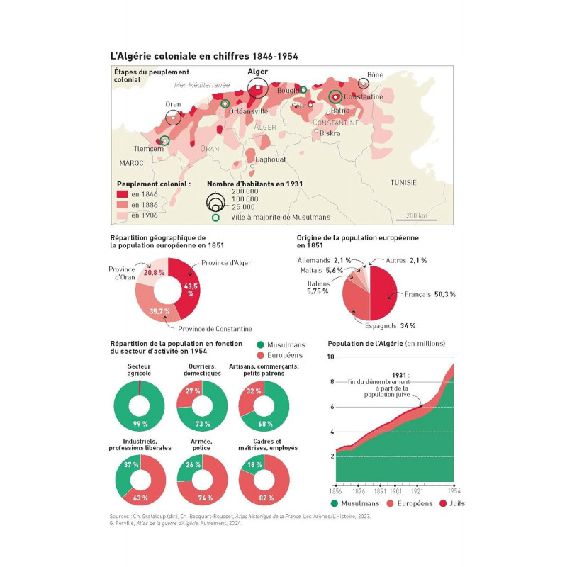 Deux siècles de domination, de luttes, d'exils... et des mémoires toujours irréconciliées. Depuis plus de 60 ans, les relations entre la France et l'Algérie oscillent entre tensions diplomatiques, mémoires à vif et récits concurrents. Héritée de 132 ans de colonisation et d'une guerre d'indépendance sanglante, cette histoire commune reste un sujet brûlant des deux côtés de la Méditerranée. En 45 questions-réponses, Thomas Snégaroff et Benjamin Stora explorent les grandes étapes de la colonisation, les ressorts du nationalisme algérien, les fractures mémorielles et les conséquences profondes sur les sociétés contemporaines. Pourquoi cette guerre a-t-elle été si longue à nommer ? Quelle place occupent les mémoires dans le débat public ? Une réconciliation est-elle possible ? Un ouvrage clair et accessible, avec des cartes, des infographies et des textes de référence.