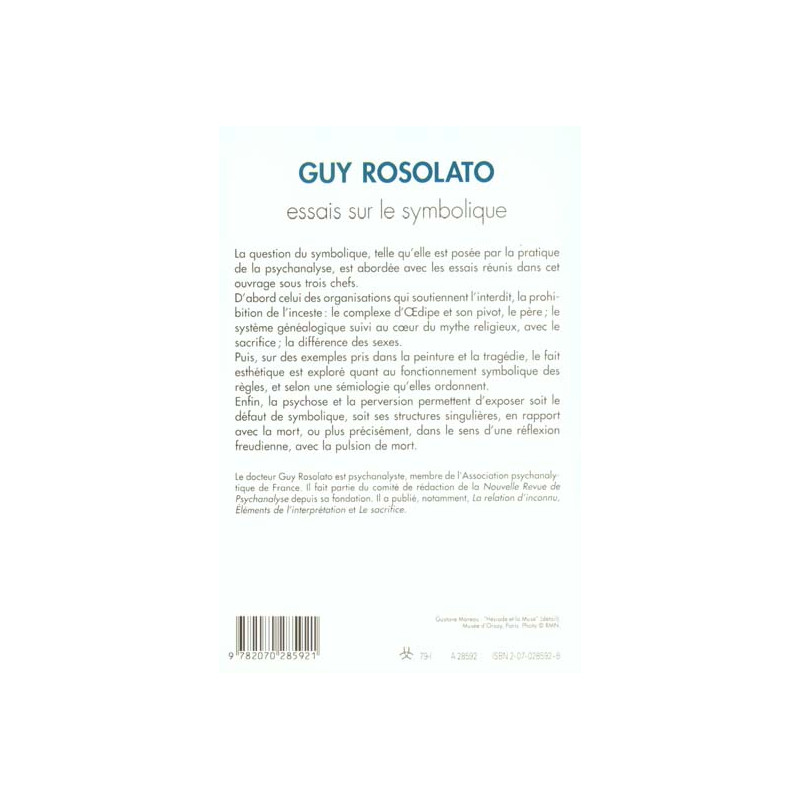 La question du symbolique, telle qu'elle est posée par la pratique de la psychanalyse, est abordée avec les essais réunis dans cet ouvrage sous trois chefs. D'abord celui des organisations qui soutiennent l'interdit, la prohibition de l'inceste : le complexe d'Oedipe et son pivot, le père ; le système généalogique suivi au cour du mythe religieux, avec le sacrifice ; la différence des sexes. Puis, sur des exemples pris dans la peinture et la tragédie, le fait esthétique est exploré quant au fonctionnement symbolique des règles, et selon une sémiologie qu'elle ordonne. Enfin, la psychose et la perversion permettent d'exposer soit le défaut de symbolique, soit ses structures singulières, en rapport avec la mort, ou plus précisément, dans le sens d'une réflexion freudienne, avec la pulsion de mort.