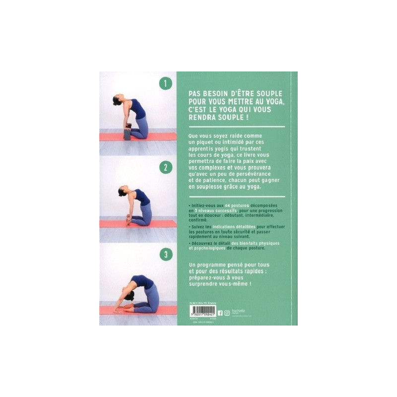 Pas besoin d'être souple pour vous mettre au yoga, c'est le yoga qui vous rendra souple ! Que vous soyez raide comme un piquet ou intimidé par ces apprentis yogis qui trustent les cours de yoga, ce livre vous permettra de faire la paix avec vos complexes et vous prouvera qu'avec un peu de persévérance et de patience, chacun peut gagner en souplesse grâce au yoga. Initiez-vous aux 44 postures décomposées en 3 niveaux successifs, pour une progression tout en douceur : débutant, intermédiaire, confirmé.