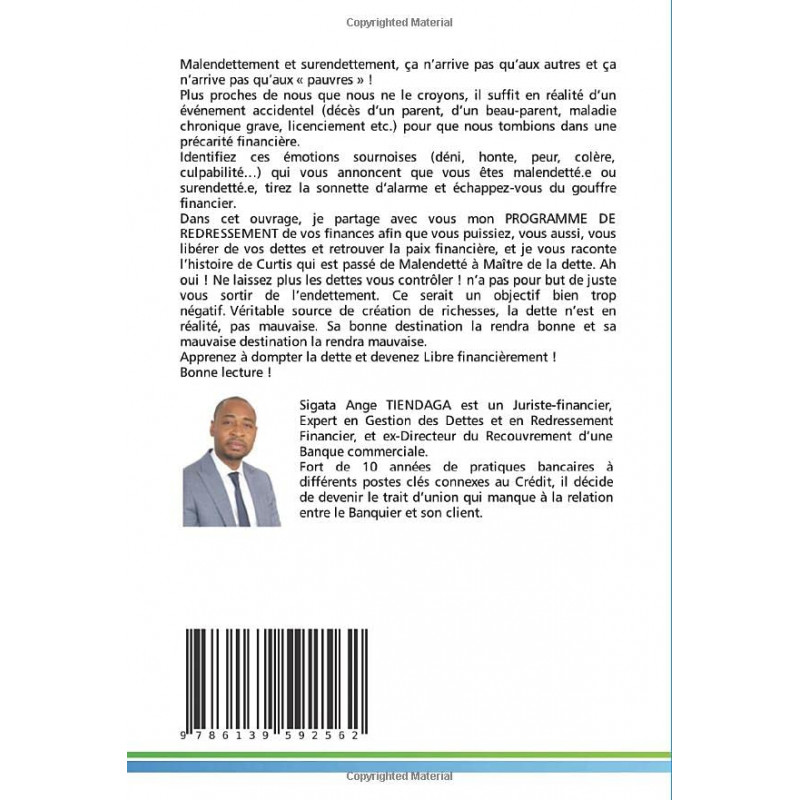 Mal endettement et surendettement, ça n'arrive pas qu'aux autres et ça n'arrive pas qu'aux pauvres !Plus proches de nous que nous ne le croyons, il suffit en réalité d'un événement accidentel (décès d'un parent, d'un beau-parent, maladie chronique grave, licenciement etc.) pour que nous tombions dans une précarité financière. Identifiez ces émotions sournoises (déni, honte, peur, colère, culpabilité...) qui vous annoncent que vous êtes malendetté.e ou surendetté.e, tirez la sonnette d'alarme et échappez-vous du gouffre financier. Dans cet ouvrage, je partage avec vous mon PROGRAMME DE REDRESSEMENT de vos finances afin que vous puissiez, vous aussi, vous libérer de vos dettes et retrouver la paix financière, et je vous raconte l'histoire de Curtis qui est passé de Mal endetté à Maître de la dette. Ah oui ! Ne laissez plus les dettes vous contrôler ! n'a pas pour but de juste vous sortir de l'endettement. Ce serait un objectif bien trop négatif. Véritable source de création de richesses, la dette n'est en réalité, pas mauvaise. Sa bonne destination la rendra bonne et sa mauvaise destination la rendra mauvaise. Apprenez à dompter la dette et devenez Libre financièrement !Bonne lecture !