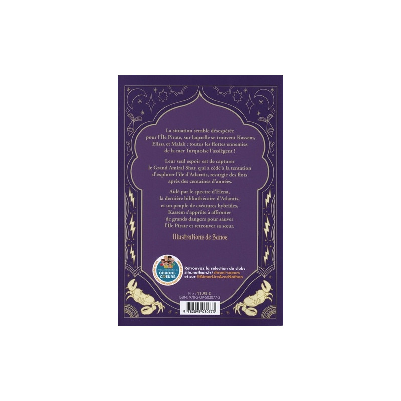 Le dénouement envoûtant de la série d'aventures et de voyages dans un univers de fantasy original. L'histoire : La situation semble désespérée pour l'Ile Pirate, sur laquelle se trouve Kassem, Elissa et Malak : toutes les flottes ennemies de la mer Turquoise l'assiègent ! Aidé par le spectre d'Elena, la dernière bibliothécaire d'Atlantis, et un peuple de créatures hybrides, Kassem s'apprête à affronter de grands dangers pour sauver l'Ile Pirate et retrouver sa soeur. " Un roman passionnant entre One Piece et L'Odyssée " Shaynning, Booknode