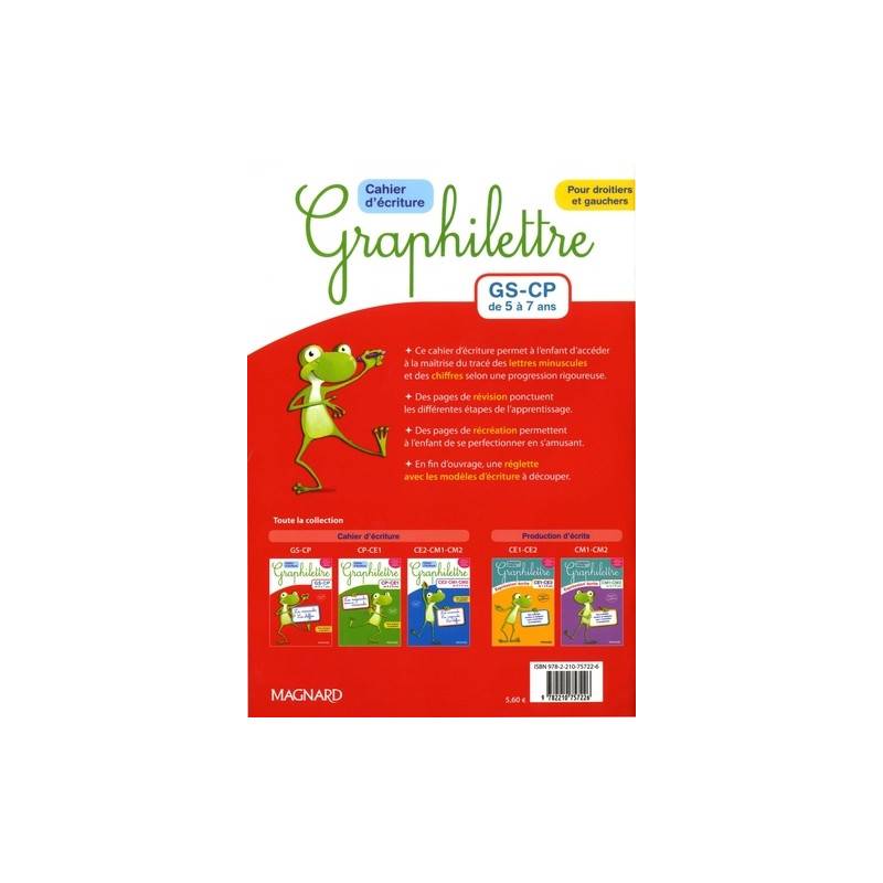 Cahier d'écriture Graphilettre GS-CP - De 5 à 7 ans - Les minuscules et les chiffres - Grand Format