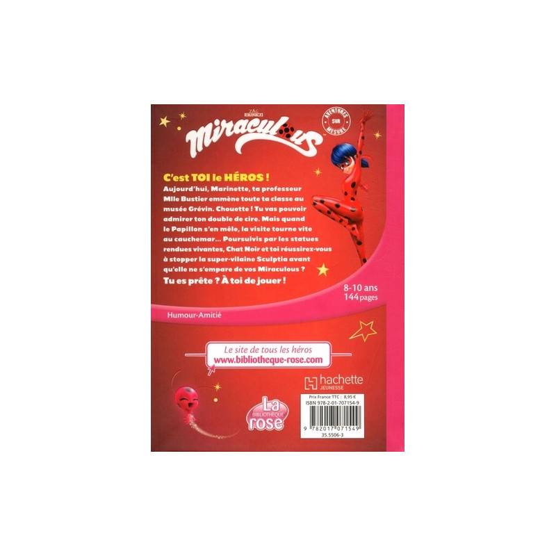Aujourd'hui, Marinette, ta professeur Mlle Bustier emmène toute ta classe au musée Grévin. Chouette ! Tu vas pouvoir admirer ton double de cire. Mais quand le Papillon s'en mêle, la visite tourne vite au cauchemar... Poursuivis par les statues rendues vivantes, Chat Noir et toi réussirez-vous à stopper la super-vilaine Sculptia avant qu'elle ne s'empare de vos Miraculous ?
