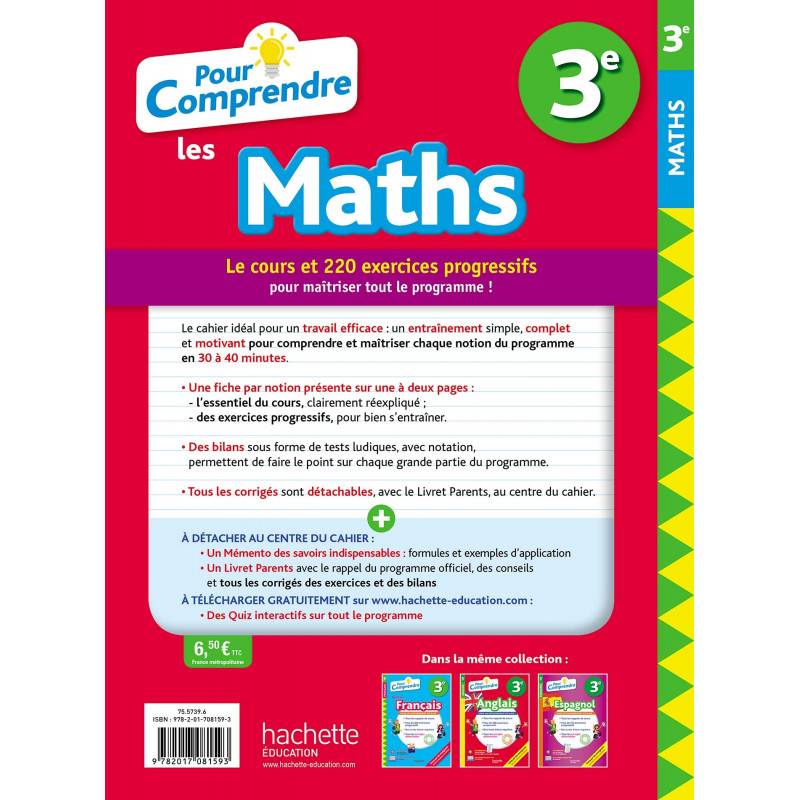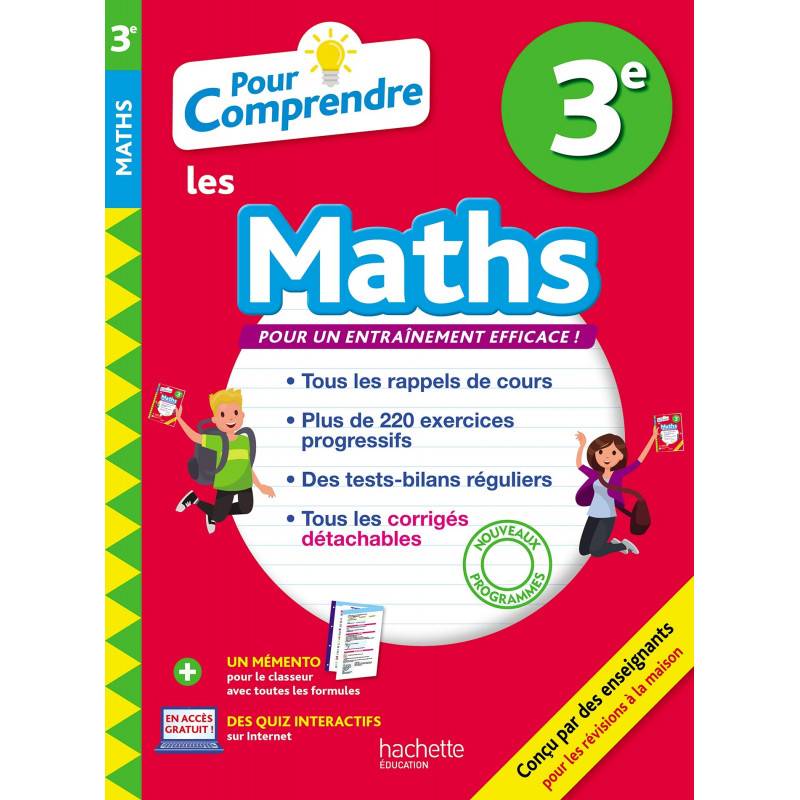 - Tous les corrigés sont détachables, avec le Livret Parents, au centre du cahier. En plus ! A DETACHER AU CENTRE DU CAHIER : - Un Mémento des savoirs indispensables : formules et exemples d'application - Un Livret Parents avec le rappel du programme officiel, des conseils et tous les corrigés des exercices et des bilans A TELECHARGER GRATUITEMENT sur www. hachette-education. com - Des Quiz interactifs sur tout le programme