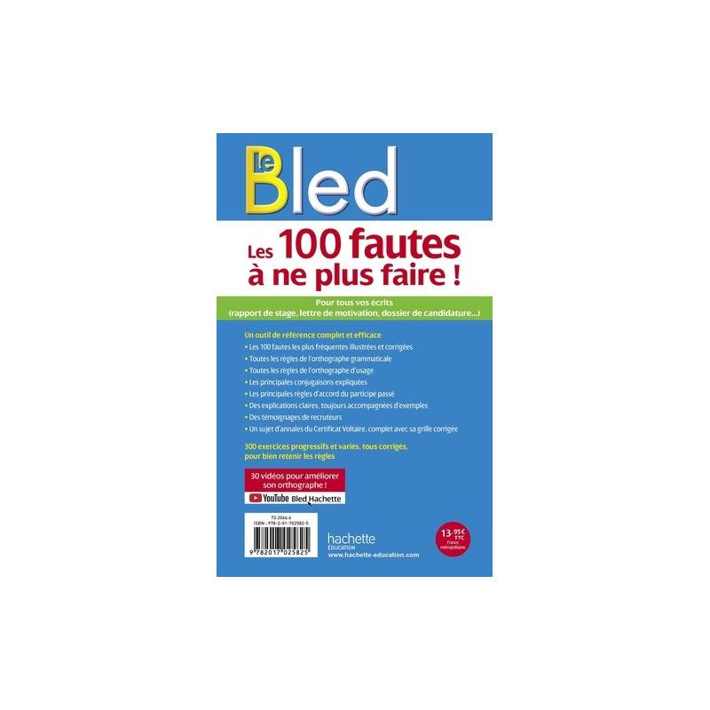 Un outil de référence complet et efficace pour des écrits irréprochables (rapport de stage, lettre de motivation, dossier de candidature...) ! - Les 100 fautes les plus fréquentes illustrées et corrigées - Toutes les règles de l'orthographe grammaticale - Toutes les règles de l'orthographe d'usage - Toutes les règles d'accord des verbes - Des explications claires, toujours accompagnées d'exemples - Des témoignages de recruteurs - 300 exercices progressifs et variés, tous corrigés, pour bien retenir les règles - Un sujet d'annales du Certificat Voltaire, complet avec sa grille corrigée EN PLUS : 30 vidéos pour améliorer son orthographe, disponibles sur la chaîne YouTube Bled Hachette ! Auteurs Aurore Ponsonnet est orthophoniste depuis 1999.
