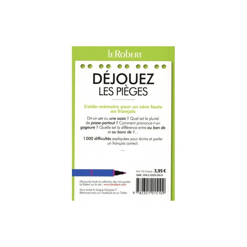 Dit-on un ou une oasis ? Quel est le pluriel de passe-partout ? Comment prononce-t-on gageure ? Quelle est la différence entre au ban de et au banc de ? ... 1 000 difficultés expliquées pour écrire et parler un français correct.