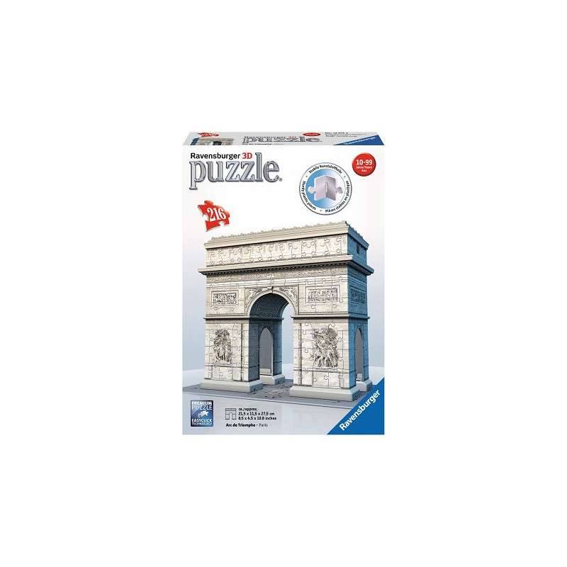 Cette superbe reproduction en 3D de l'Arc de Triomphe est constituée de 216 pièces de puzzles en plastique numérotées, ainsi que d'accessoires uniques pour finaliser l'édifice. La qualité de découpe des pièces -plates, incurvées ou pliables- lui assure une parfaite stabilité, le tout sans colle. Un moyen unique et ludique de re-découvrir ce célèbre monument !