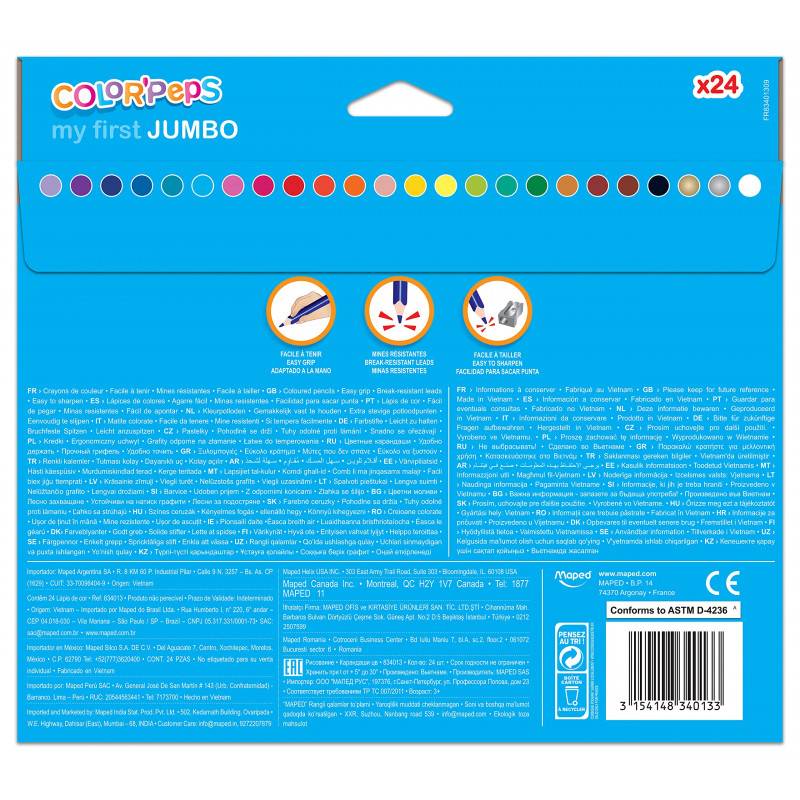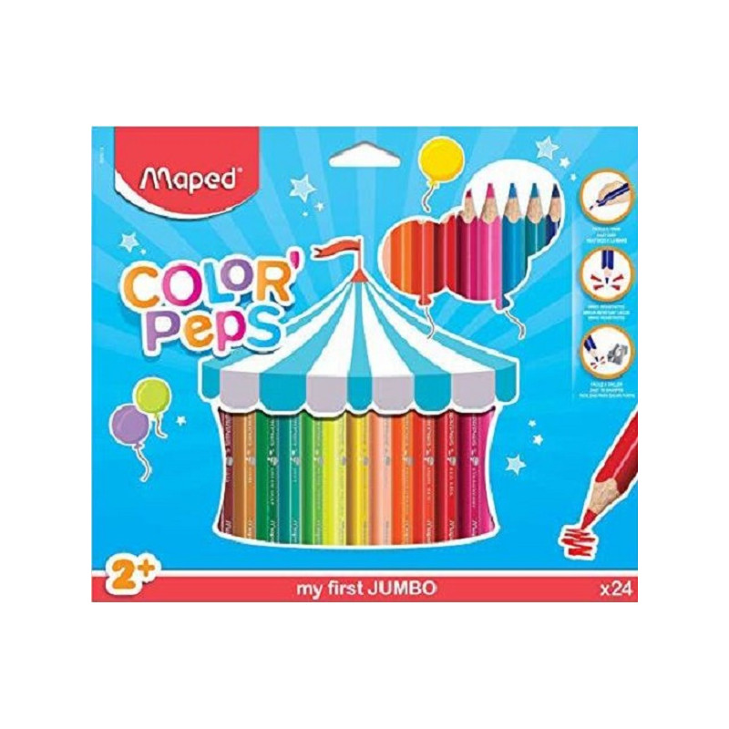 Maped - Maxi Crayons de Couleur Color'Peps - Premiers Crayons de Coloriage pour Bébé +2 ans