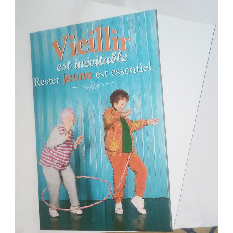 Surprenez votre grand-mère avec cette carte mamy's hula hoop pleine d'humour et de tendresse. Cette carte est parfaite pour lui souhaiter un joyeux anniversaire, une bonne fête ou simplement lui dire que vous pensez à elle. La carte représente une mamie souriante qui fait du hula hoop avec un texte rigolo et inspirant, et vous pouvez y ajouter votre nom, le sien et un message de votre choix. La carte est disponible en plusieurs couleurs assorties, et une enveloppe est offerte avec. C'est une façon originale et amusante de faire rire et plaisir à votre mamie adorée.