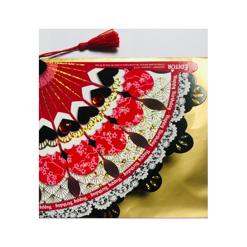 Carte éventail rouge en découpe et collages