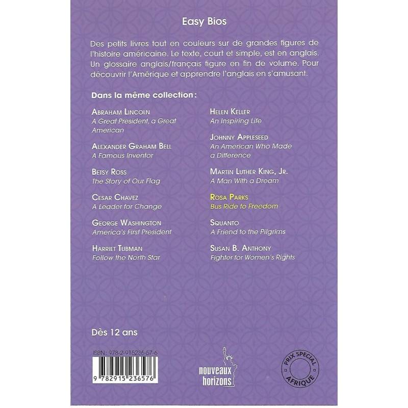 Des petits livres tout en couleurs sur de grande figures de l'histoire américaine le texte court et simple est en anglais .un glossaire anglais/français figure en fin de volume pour découvrir l'Amérique et apprendre l'anglais en s'amusant.