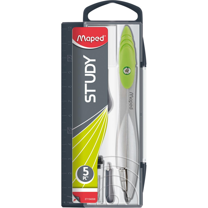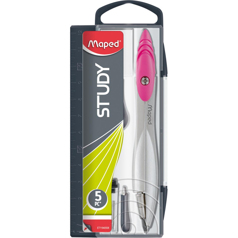 Maped compas Study coffret avec 1 compas Study, 1 gomme, 1 étui-mines, 1 tournevis et 1 taille-mines – Vendu à l'unité