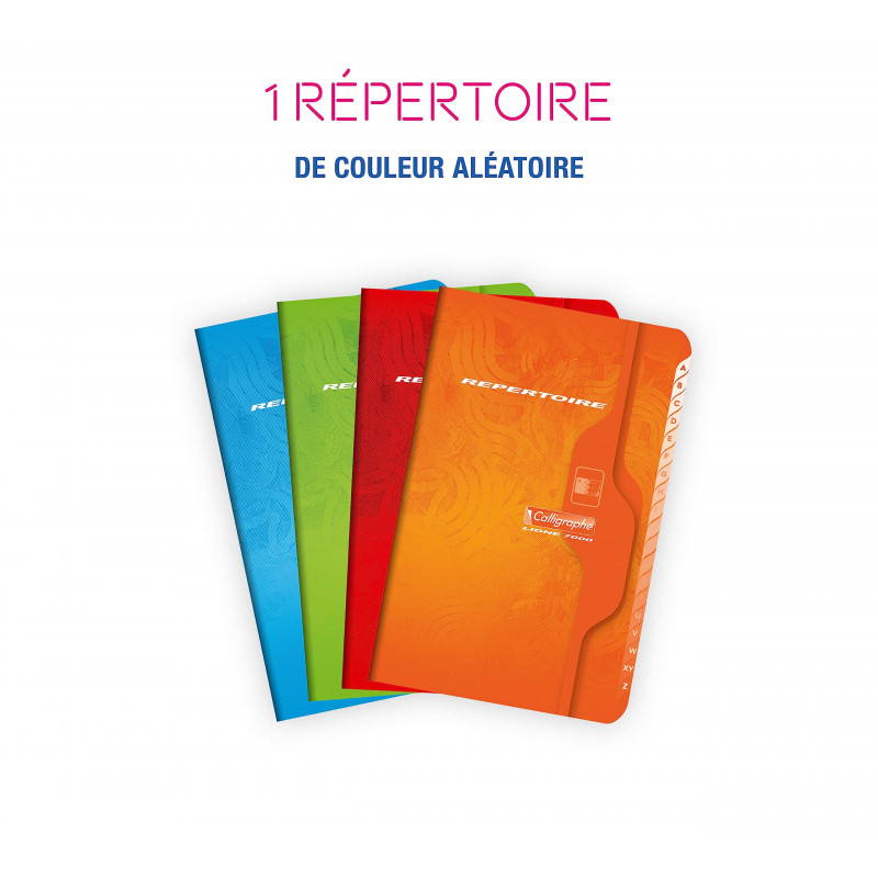 1 RÉPERTOIRE DE COULEUR ALÉATOIRE : rouge, orange, bleu ciel ou vert anis COUVERTURE : carte couchée recyclée vernie RELIURE PIQUÉE : le bon rapport qualité/prix Les pages sont reliées entre elles par des agrafes PAPIER : blanc vélin surfin 70 g/m², le meilleur rapport qualité/prix FORMAT DE POCHE : ultra-pratique, emportez-le partout avec vous ! TOUCHES ALPHABÉTIQUES (A-Z) : bicolores pour un meilleur repérage CERTIFIÉ PEFC : pour la gestion durable des forêts Fabriqué en FRANCE