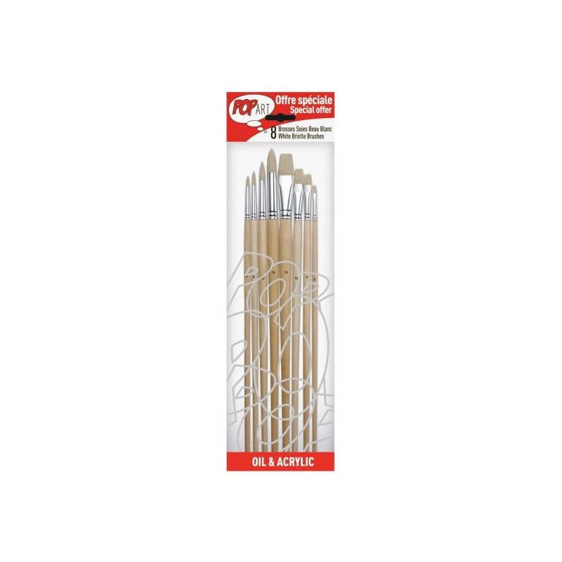 Lot de 8 pinceaux soie plats et ronds pour huile et acrylique