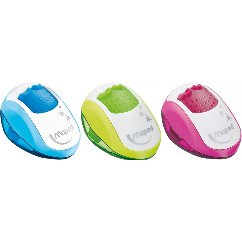 Un taille-crayons moderne, coloré et compact qui sera le compagnon idéal de l'enfant. Coloris bleu; rose et vert Coloris aléatoires - Le choix du coloris n'est pas possible.