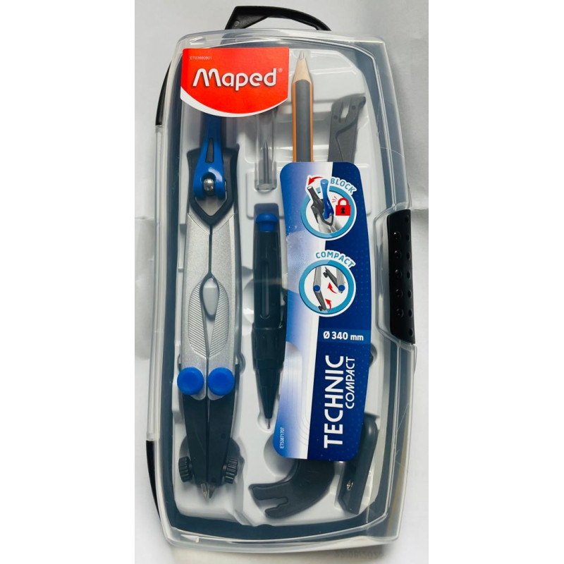Le compas Technic Compact de Maped dispose de branches solides en métal, il résistera à plusieurs années de scolarité. Ce compas dispose d'un système de blocage des branches, pour garder un écartement précis pendant toute une séance de traçage. Les branches du compas Compact se plie, pour un rangement compact et sûr dans la trousse. Contient un compas Technic Compact, une bague universelle, un porte mine, une allonge, un mini graphite, un étui mine et un taille-mine. Depuis sa création en 1947, la société Maped (Manufacture d'Articles de Précision Et de Dessin) appuie son développement sur son savoir-faire industriel, sa culture d’innovation et sa réactivité pour offrir à ses utilisateurs des solutions toujours plus efficaces et durables. Groupe industriel familial présent sur les 6 continents et dans plus de 125 pays, Maped est aujourd’hui leader mondial des fournitures scolaires et de bureau.
