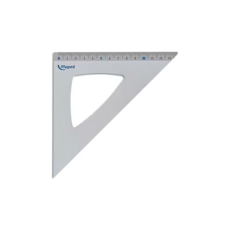 Les outils de traçage de cette gamme sont en aluminium anodisé pour une résistance optimale et plus de durabilité. Leur composition métallique leur confère une couleur grise et une grande solidité. Les équerres en aluminium ne se cassent pas et leur excellente robustesse garantit une très bonne durée de vie. Des outils rigides qui vous accompagneront longtemps ! La gamme comprend aussi d’autres équerres, des rapporteurs et des règles. Avec des graduations progressives en millimètre et des repères visuels tous les 5 cm, cette équerre Maped offre un tracé de précision. Un indispensable tant pour les élèves que les professionnels. Conçue en aluminium, cette équerre est solide et durable. Cette équerre dispose d'un angle à 45° et d'une hypoténuse de 21cm, une dimension standard pour un usage scolaire comme professionnel.