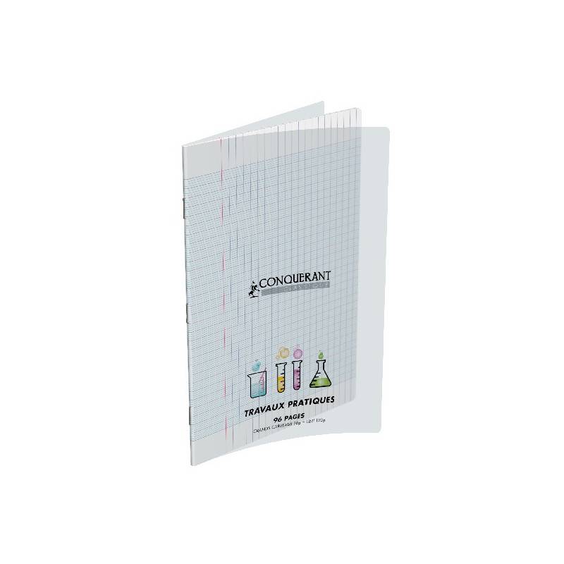 CAHIER TRAVAUX PRATIQUES CONQC AGRAFE A4 96 PAGES 90120G SEYES/UNI POLYPRO.Dimensions : 29,7x21x0,8 cm. D'un côté, une page grands carreaux 90g/m² pour écrire le cours et de l'autre, une page unie blanche 120g/m² pour faire les schémas . Couverture lavable et résistante en polypropylène pour un cahier toujours impeccable, dans n'importe quelle situation . La gamme Conquérant Classique 90g vous offre des produits économiques sans compromettre votre exigence en terme de qualité.Fabriqué en France.
