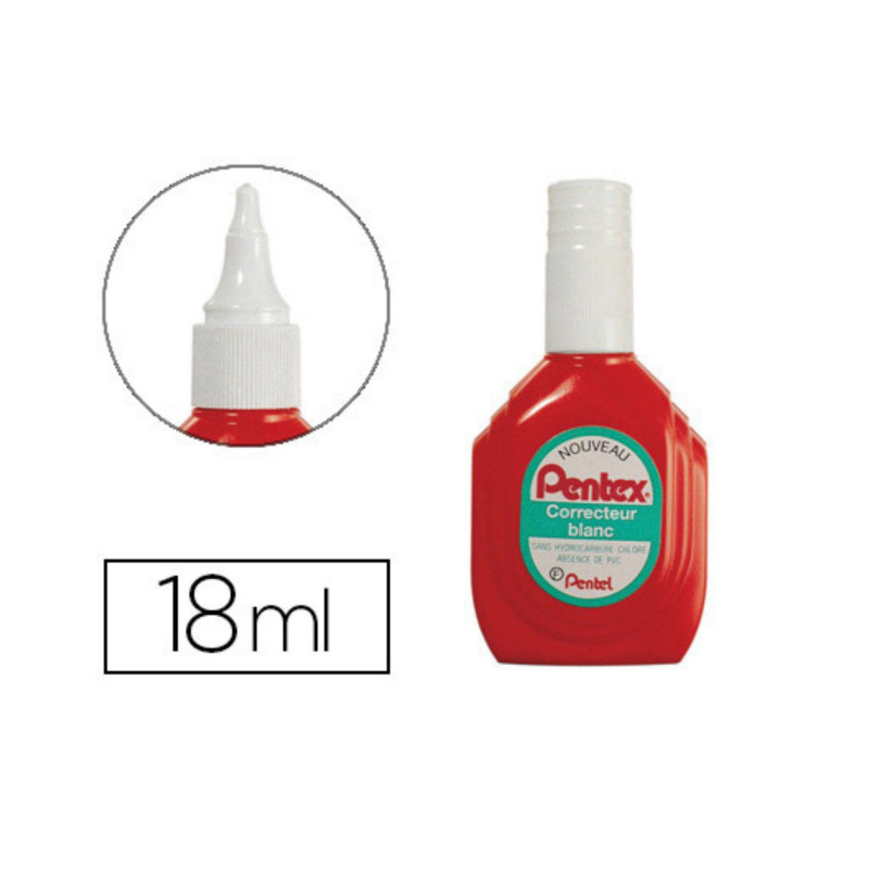 Correcteur liquide PENTEX à valve : contrôle du débit, finesse de correction. Parfaitement blanc et couvrant, séchage rapide, pas de tracé résiduel à la photocopie, facilité de réécriture. Ne nécessite pas d'ajout de solvant. Système hermétique, pas d'évaporation, utilisation à 98%, aucun risque de renverser le liquide. Sans trichloroéthène 1.1.1., flacon sans PVC. Contenance : 18 ml