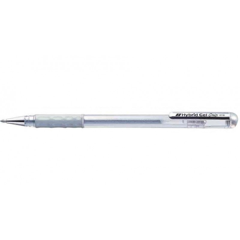 PENTEL - Roller à encre Hybrid Gel Grip - Métallisé Argent - 0.8 mm
