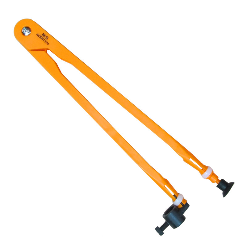 Boussole pour dessin et mesure du travail. Les jambes de la boussole sont articulées. Sur une jambe, il y a une ventouse en caoutchouc, sur la seconde, il y a un support pour la craie.