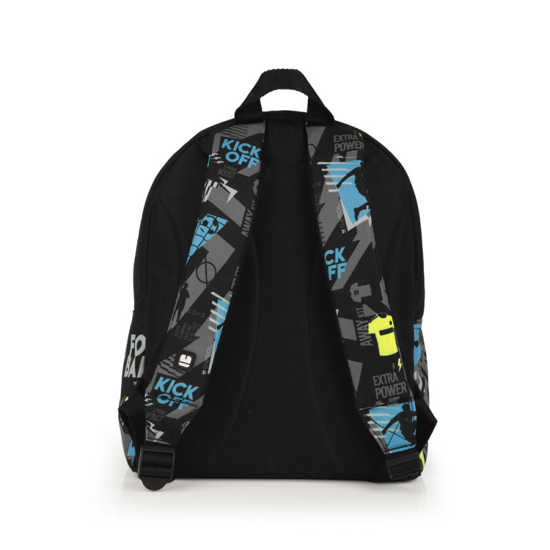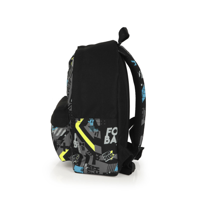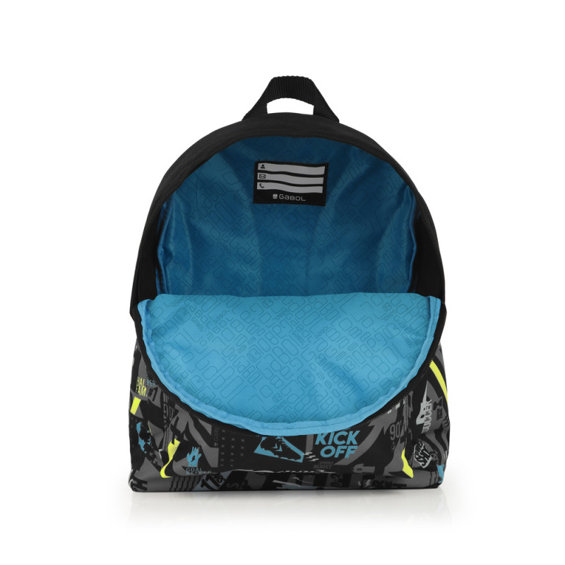 Sac à dos scolaire avec poignées réglables de la collection Gabol Rivals. Il dispose d'un compartiment principal et d'une poche extérieure sur le devant, tous deux avec fermeture éclair. Il dispose également d'un identifiant et d'un dos rembourré. Fabriqué en nylon imperméable sans PVC imprimé de motifs de football.
