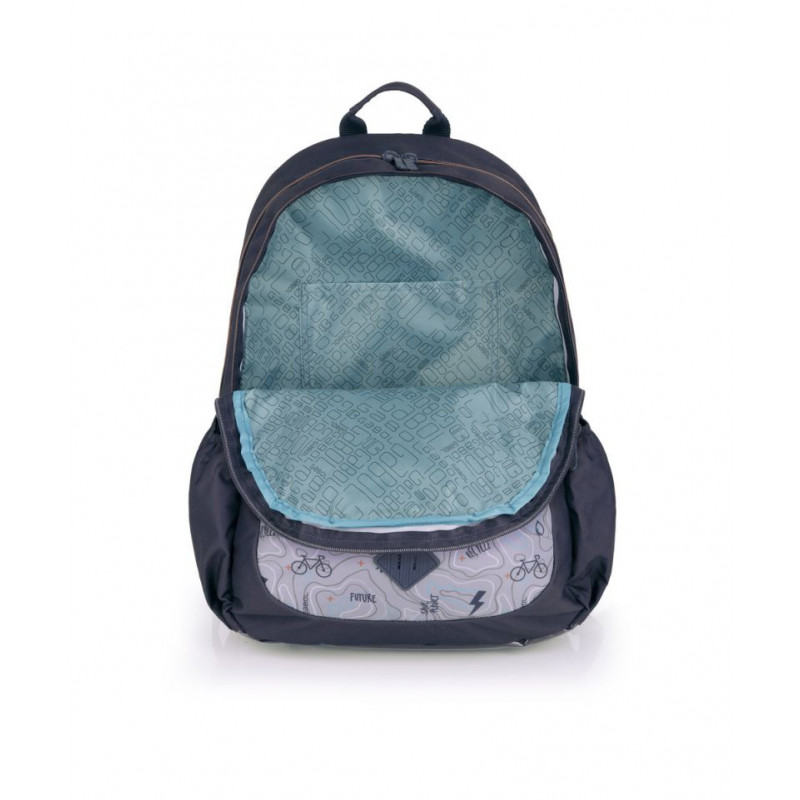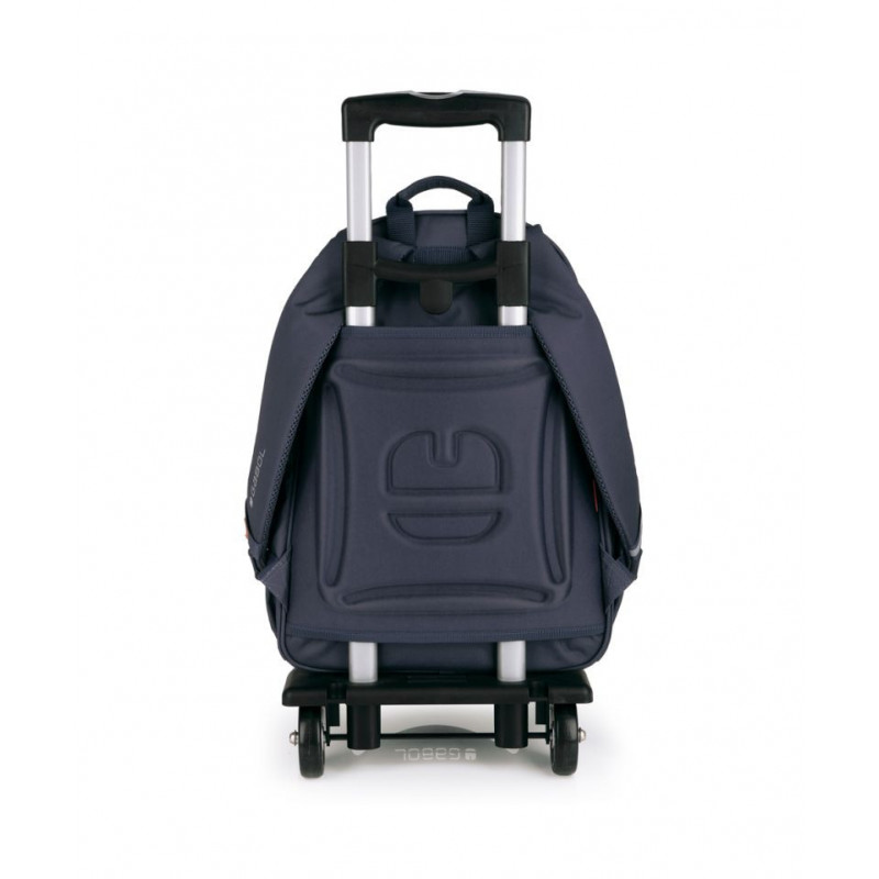 Sac à dos scolaire avec 3 compartiments. Dos ergonomique avec mesh et roulettes. Épaulettes rembourrées et renforcées. Base rembourrée avec protection plastique renforcée (antibactérienne, imperméable et lavable). Ceinture pectorale réglable.