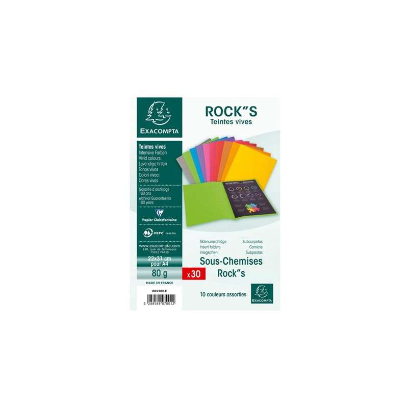 30 sous-chemises Rock"s 80 format 22 x 31 cm.Pour ranger jusqu'à 100 feuilles 80g au format A4.Couleurs :...