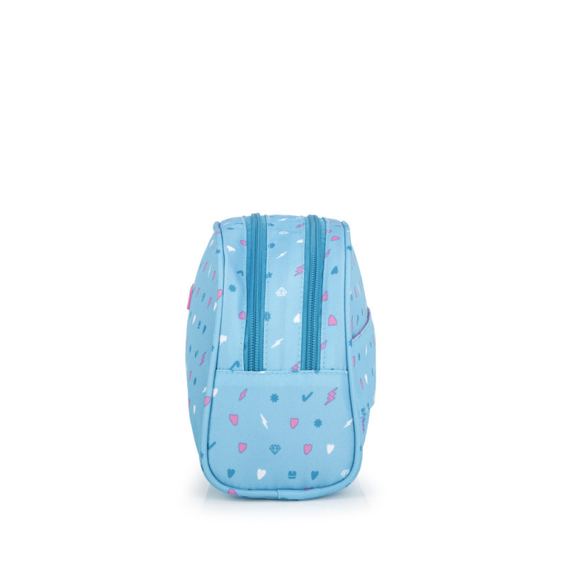 Trousse de toilette double avec poignée et sangle pour attacher au chariot.