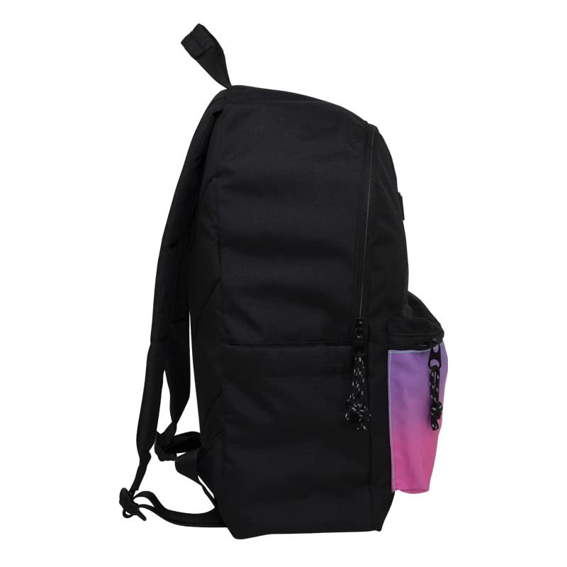 Sac à dos urbain classique avec 2 fermetures éclair. Série Sunset, couleur noire. Une combinaison de couleurs dégradées inspirées du coucher de soleil, accompagnées des détails en noir et blanc....