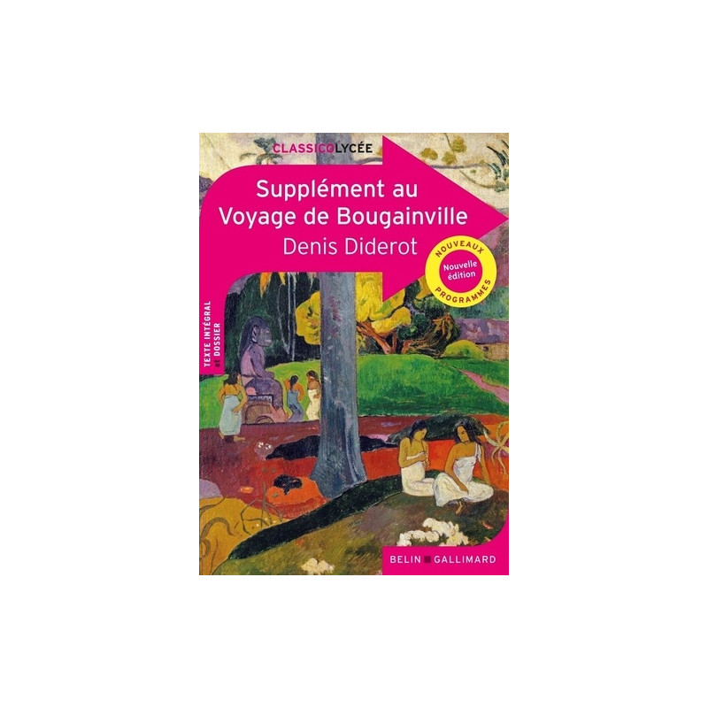 Dossier pédagogique de Julie Champion. En 1771, Bougainville publie son Voyage autour du monde et raconte son escale à Tahiti. Deux ans plus tard, Diderot donne un " Supplément " à l'ouvrage du navigateur et imagine la conversation de deux Européens sur ce récit de voyage. A travers un texte alerte et malicieux, Diderot mêle fiction et réflexion philosophique, et invite son lecteur à remettre en question les valeurs qui fondent la civilisation européenne.
