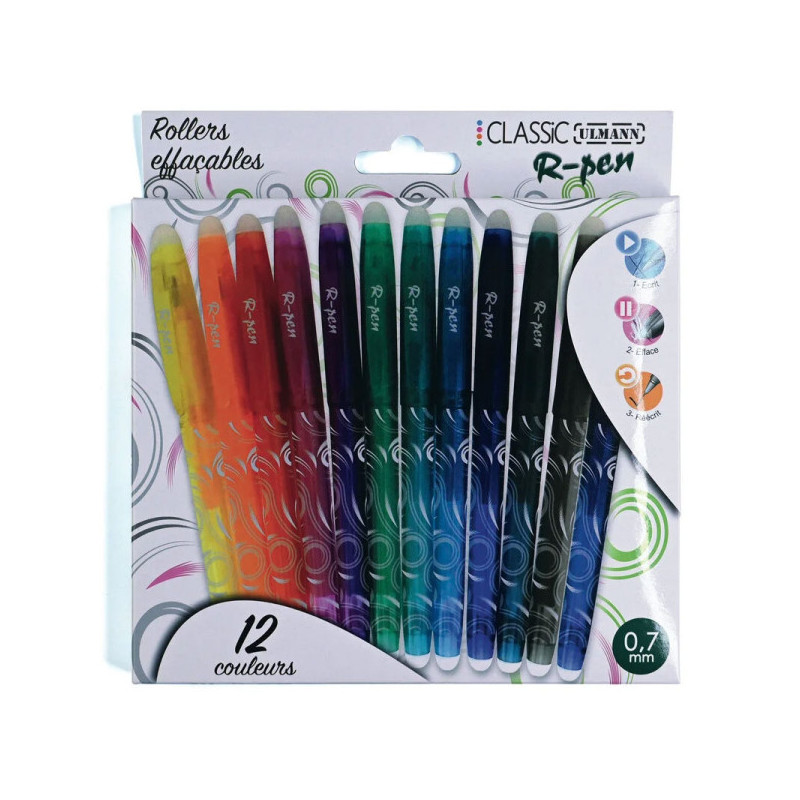 Stylos roller effaçables - Mine de 0,7mm - 12 couleurs - R-Pen - Ulmann