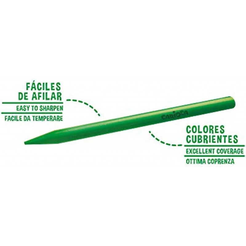 Boîte de Crayons de couleur CARIOCA bicolor Triangulaire -  Blister de 12 crayons de couleur en bois bicolores - Corps triangulaire laqué - Mine extra large de 5 mm - Résistant aux chocs et facile à tailler - Couleur brillante et couvrante - Couleur: Assortis.