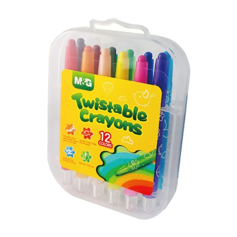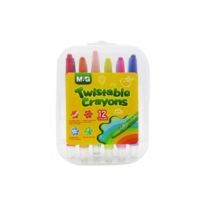 Les crayons M&G Twistable sont disponibles en 12 couleurs différentes et offrent une sensation soyeuse de dessins lisses avec des colorations uniformes. Il ne nécessite aucun affûtage ni pelage car il vous suffit de tordre nos fûts en plastique durable. Les crayons sont incassables et non toxiques, ce qui est totalement sans danger pour les enfants.​
