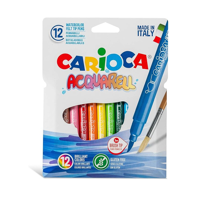 Une palette de 12 feutres aquarelle pour ajouter de la couleur à vos créations graphiques.