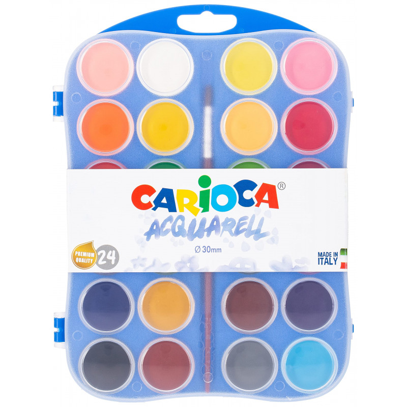 Carioca 24 aquarelles en carton plastique avec deux pinceaux