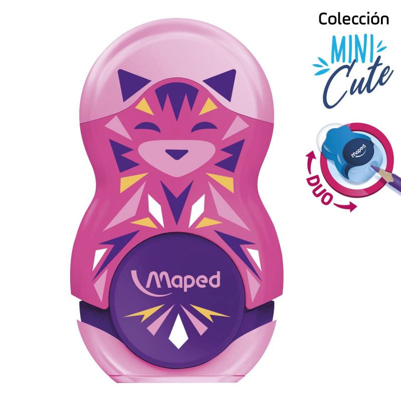 Avec le taille-crayon et la gomme LOOPY du fabricant français Maped, vous avez tout à portée de main pour les heures créatives ou pour les devoirs. La gomme est protégée par un capuchon, de sorte qu'elle ne peut pas salir la trousse. Le trou pointu pour les stylos standard de 7 à 8 mm de diamètre est également fermé par un couvercle de protection, de sorte que les restes de pointe ne peuvent pas tomber. Une petite boîte de récupération pour les restes de pointe est également intégrée dans le LOOPY. Les designs Mini Cute sont particulièrement attrayants pour les petits enfants.