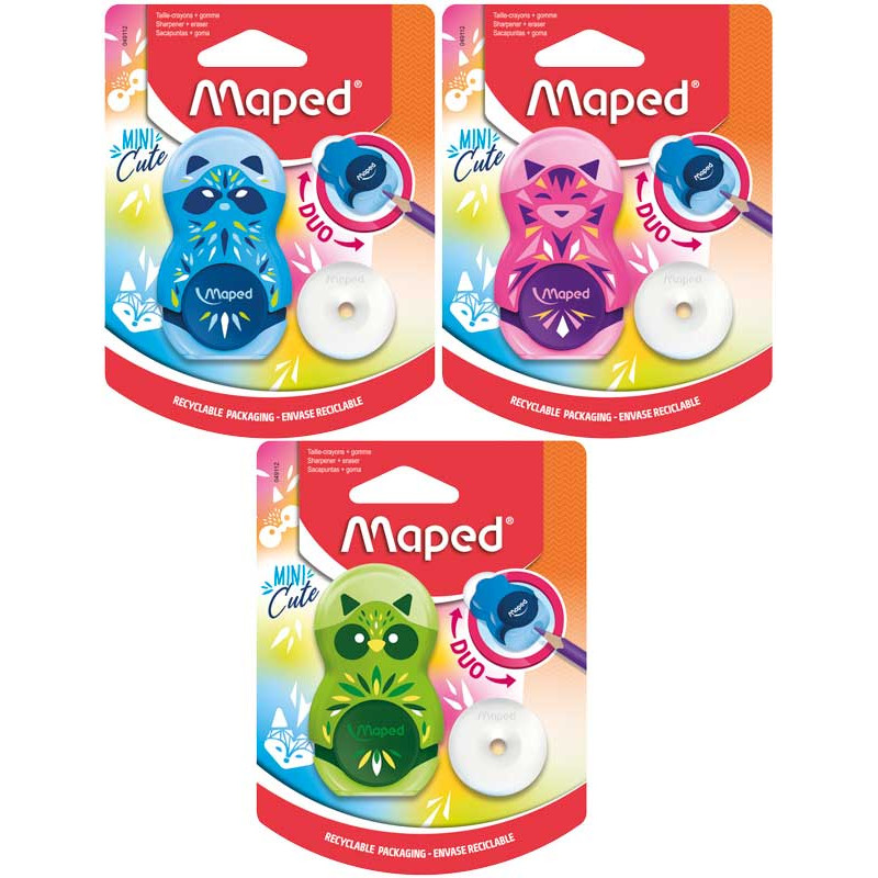 Avec le taille-crayon et la gomme LOOPY du fabricant français Maped, vous avez tout à portée de main pour les heures créatives ou pour les devoirs. La gomme est protégée par un capuchon,...