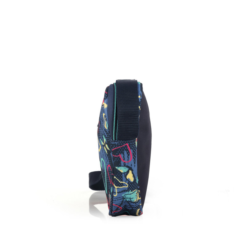 Sac enfant en forme de cœur avec bandoulière réglable. Fabriqué avec un matériau sans PVC. Matériau imperméable. Dimensions: 19x16,5x4 cm